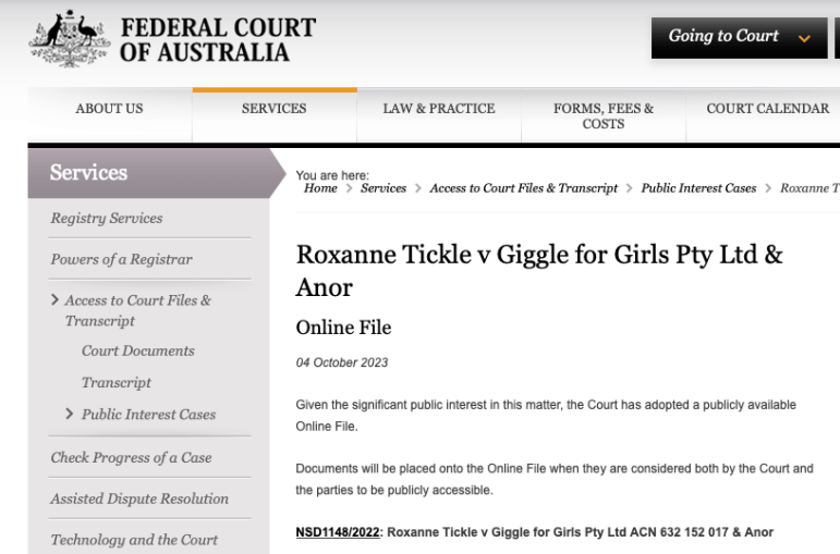 Giggle for Girls is digital application marketed as an online platform exclusively for females as a “safe space”. The CEO of the company is Sally Grover. Giggle is being sued by Roxanne Tickle, a person who was born a biological male. The statement of claim says that the Applicant “underwent gender affirming surgery in October 2019 by which her gender as a woman was affirmed”. A birth certificate issued by the Queensland Registry of Births, Deaths and Marriages in or around January 2020 states that the Applicant is female.